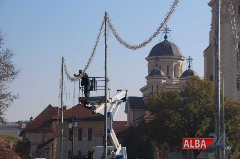 Decorarea orașului pentru sărbători a început încă din luna octombrie, când în Cetatea Alba Carolina au fost montate luminile pe podurile de la Porți. De curând au apărut în oraș și restul ornamentelor, iar până în prezent nu putem spune că sunt diferite față de anul trecut.