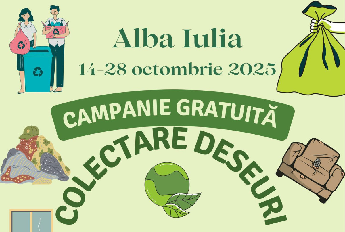 În perioada 14 – 28 octombrie 2025, în municipiul Alba Iulia se desfășoară o nouă campanie gratuită de colectare a deșeurilor voluminoase și textile menajere, organizată de operatorul de salubritate RER Vest.