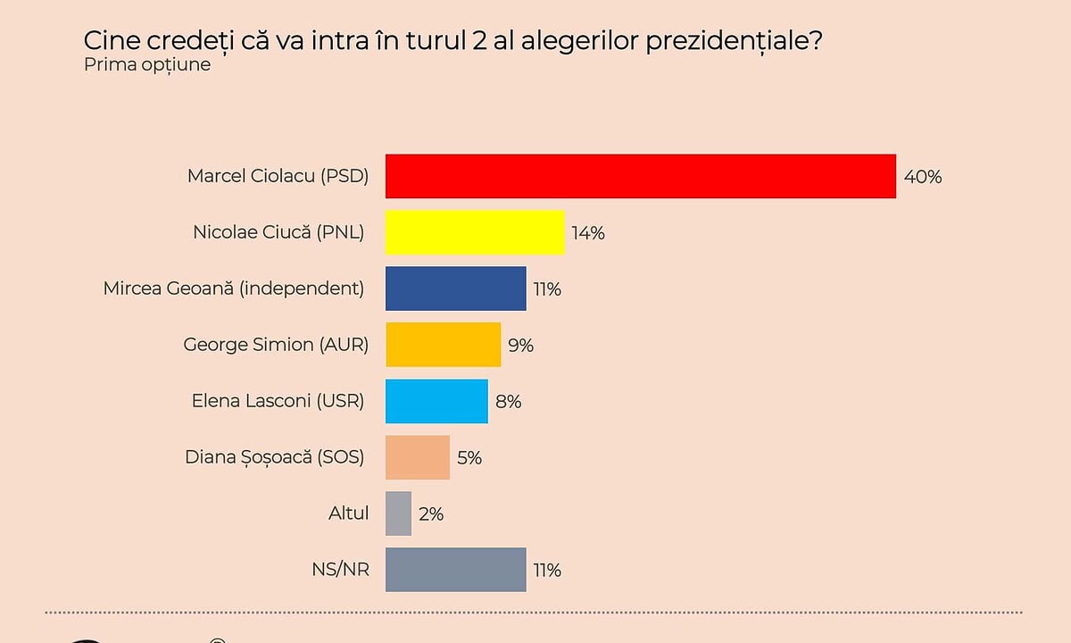 La întrebarea „Cine credeți că va intra în Turul al II-lea al alegerilor prezidențiale?”, răspunsurile au fost: