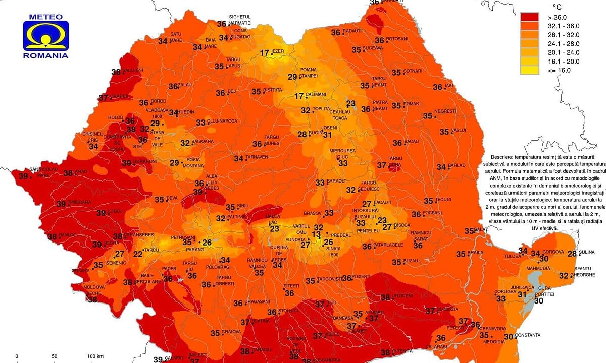 Primul val de caniculă lovește vineri România. În județul Alba, la ora 13:00, temperatura resimțită era de 39 de grade Celsius la Sebeș și 36 de grade Celsius la Alba Iulia. În țară, cea mai mare temperatură resimțită vineri a fost înregistrată la ora 12:00, la Sânnicolau Mare - 42 de grade Celsius.
