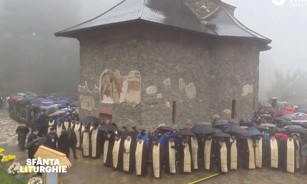 Circa 30 de episcopi, membri ai Sfântului Sinod al Bisericii Ortodoxe Române, au participat la Sfânta Liturghie, la altarul de vară al mănăstirii.