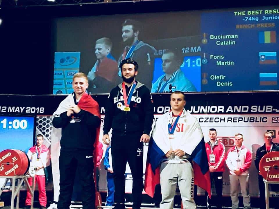 UPDATE: Sportivul Cătălin Buciuman (cat. 74 kg) a ridicat 195 de kilograme la proba împins din culcat, obținând cel mai bun rezultat dintre toți concurenții, la tineret, și a urcat, astfel, pe prima treaptă a podiumului la această probă, devenind campion european.