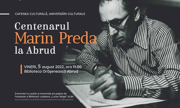 Vineri, 5 august, la Abrud, începând cu ora 11.00, în sala de ședințe a consiliului local, va avea loc evenimentul Centenarul Marin Preda. Cu această ocazie, biblioteca orășenească va primi...