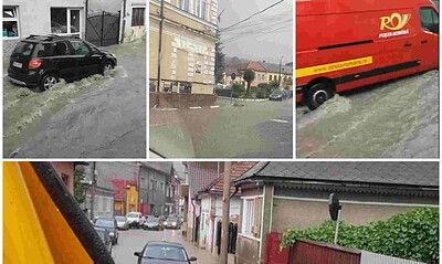 Mai multe străzi centrale din Abrud au fost inundate miercuri după-amiază, după o ploaie puternică....
