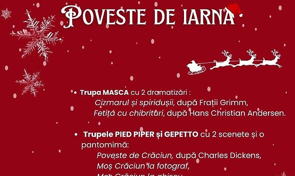 La Sebeș este prezentat miercuri, 21 decembrie, de la ora 17.00, spectacolul de teatru pentru copii „Poveste de iarnă". Pe scena sălii de spectacole „Radu Stanca” a Centrului Cultural „Lucian...