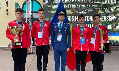 Elevii sergent major Robert Bârc și Ilie Popa, elevul sergent David Pop și elevul fruntaș...