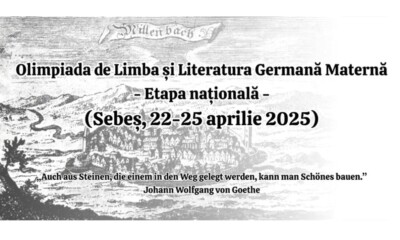 Olimpiada de Limba Germană Maternă 2025, etapa națională la Sebeș: peste 130 de elevi din țară participă miercuri, 23 aprilie, la proba scrisă. Primele rezultate vor fi comunicate în 24...