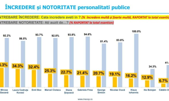 Mircea Geoană conduce în clasamentul încrederii în personalități publice, urmat de Laura Codruța Kovesi și Emil Boc, potrivit unui sondaj de opinie realizat de INSCOP Research la comanda News.ro în...