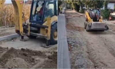 Lucrările pe strada Aurel Vlaicu din orașul Teiuș avansează. Se montează sistemele pentru colectarea apelor...