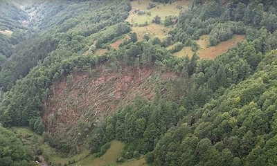 O furtună extrem de puternică a pus la pământ zeci de copaci pe un versant...