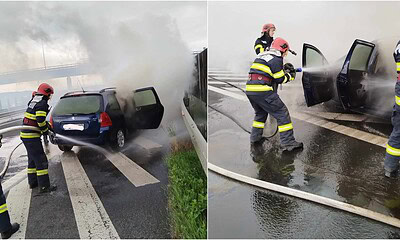 Un autoturism a fost cuprins de flăcări duminică, 25 iunie, în jurul orei 18.20, pe...