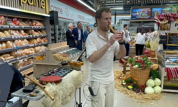 Sunetele care au ieșit din instrumentele tradițional românești se transformau în muzică electronică când ieșeau din sintetizator și boxele amplasate printre rafturile cu produse. Clienții unui magazin din Alba Iulia...