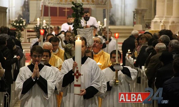 Paștele catolic 2021: Credincioşii romano-catolici din Alba Iulia s-au adunat, sâmbătă seara, la Privegherea nocturnă...