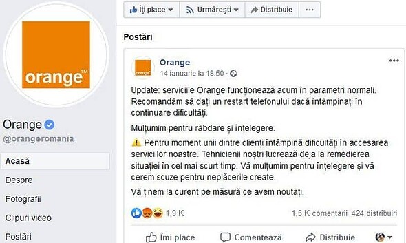 Orange, cel mai mare operator local de comunicații mobile, a fost amendat cu 500.000 de lei de către arbitrul telecom (ANCOM) pentru incidentul de rețea cu impact național din luna...