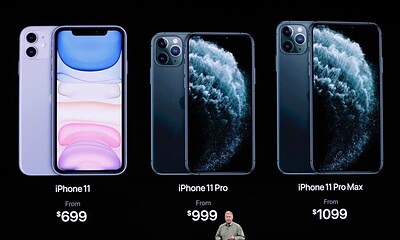 Apple a lansat, marți seara, noile modele de telefoane iPhone 11, iPhone 11 Pro și iPhone 11 Pro Max, cu prețuri între 699 și 1099...