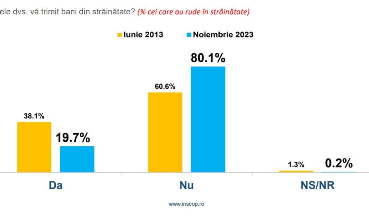 Conform sondajului de opinie realizat de INSCOP Research la comanda News.ro în noiembrie 2023, aproape 70% români declară că au rude în străinătate, în creștere cu aproximativ 20 de procente față de acum 10 ani.