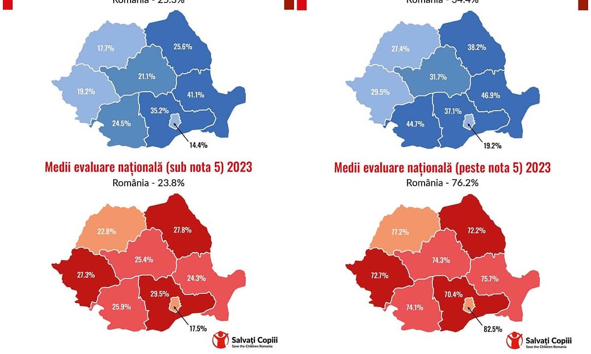 Cele mai sărace zone din România, cele mai slabe rezultate la Evaluarea Națională. Analiză a organizației Salvați Copiii. Hărți