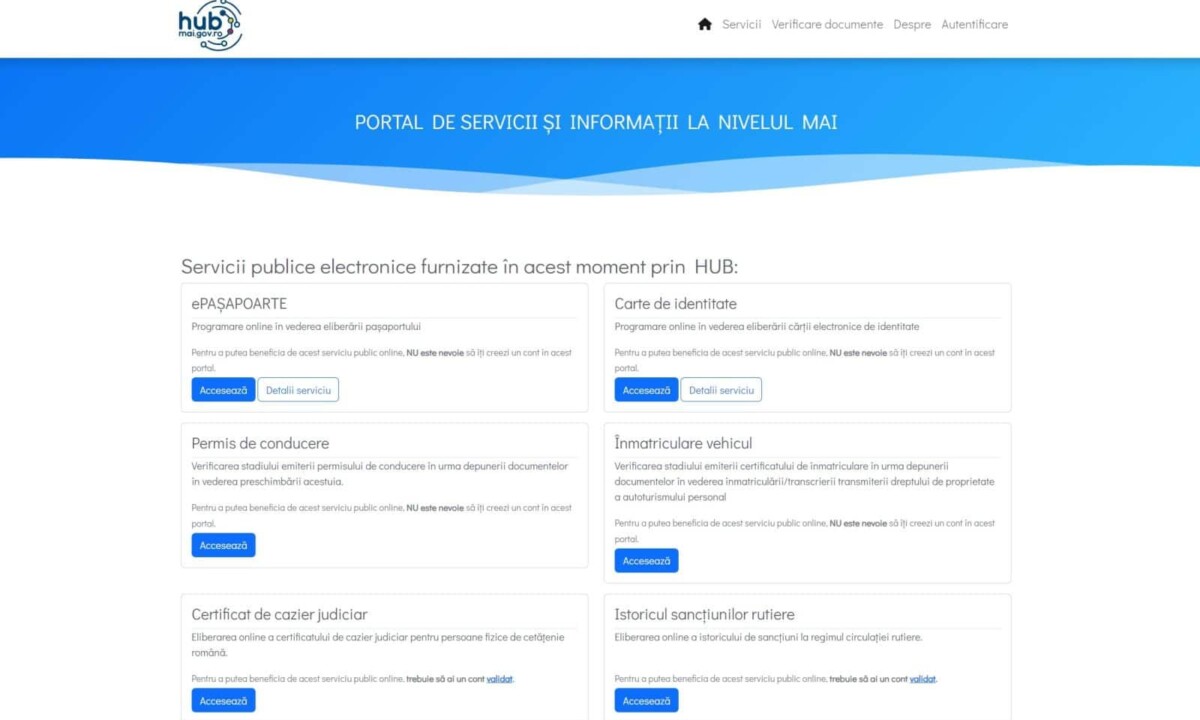 HUB-ul de servicii online al MAI a fost creat pentru a ușura interacțiunea cetățeanului cu structurile Ministerului Afacerilor Interne, urmând ca, pe această platformă, să fie integrate mai multe servicii publice oferite de instituție.