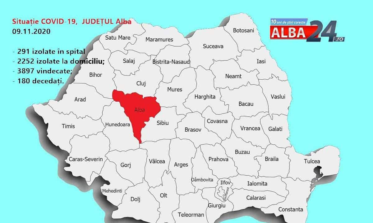 Situație COVID-19, Județul Alba - 09.11.2020, ora 09:00: