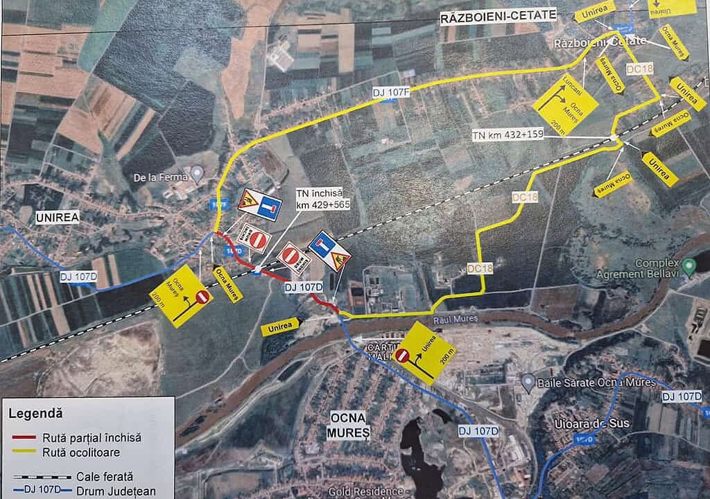 „Vă aducem la cunoștință că începând cu data de 18.07.2024 la trecerea la nivel cu calea ferată de la km CF 429+565, care intersectează Drumul Județean DJ 107D la km 2+600, aflată pe raza UAT Unirea, în dreptul Puntului de oprire Halta Unirea, se vor executa următoarele lucrări: