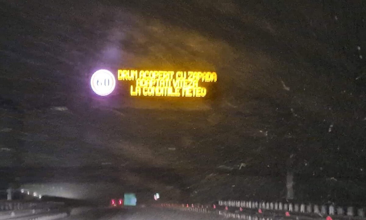 Drumarii atrag atenția că zăpada s-a depus pe carosabil ”ATENȚIE Pe A1 km 250+000 - 280+000 Sibiu (Sb) - Miercurea Sibiului (Sb), ninge abundent și zăpada este viscolită pe carosabil. ”