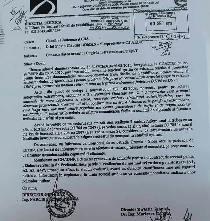Astfel, dacă în urmă cu doi ani, proiectul era considerat drept "bătut în cuie", după "negocieri" cu diferite autorităţi din Guvern, acum CDNADNR "taie" elanul autorităţilor din Alba, care au încercat să scoată zona Cugir, cu potenţial de dezvoltare economică, din izolarea dată de lipsa accesului direct la autostradă.