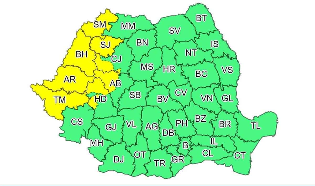 Meteorologii au emis joi un cod galben de vreme rea valabil în mai multe județe, printre care și Alba. Avertizarea intră în vigoare la noapte, de la ora 3 și este valabil până vineri, 17 iunie, la ora 11.