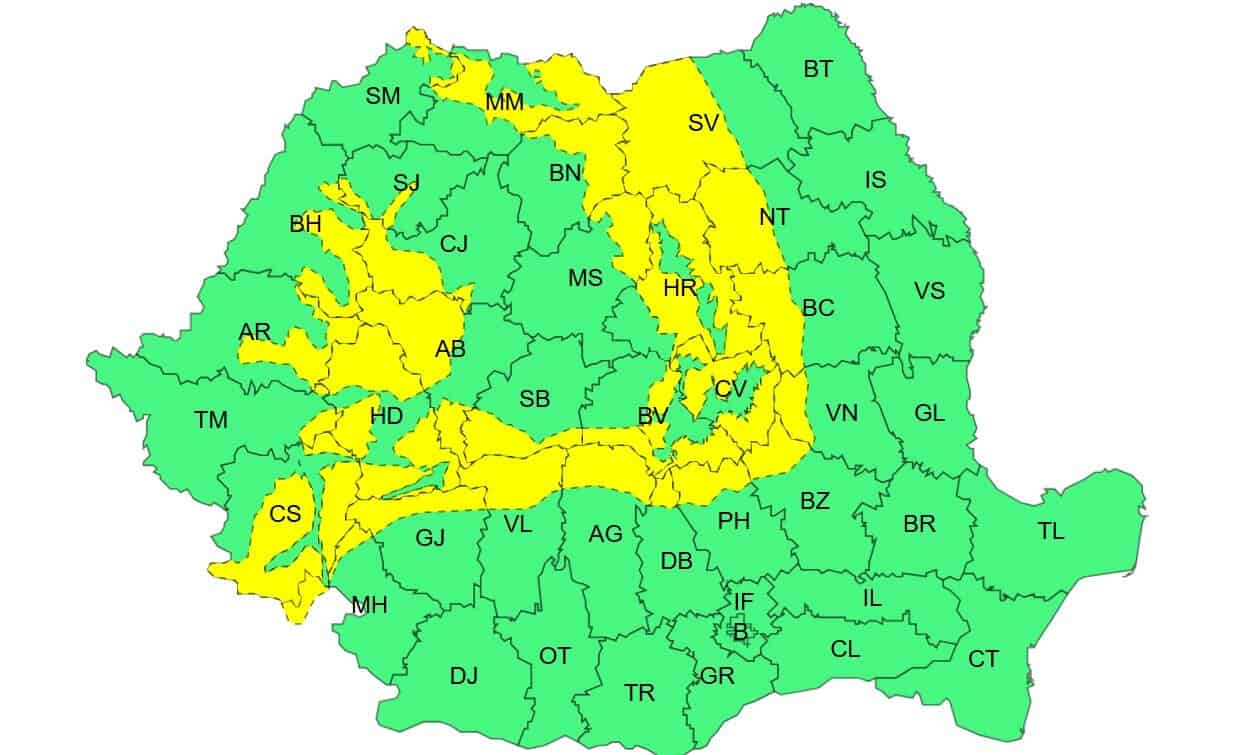 Județul Alba se află vineri sub cod galben de vânt, cantități moderate de apă, zăpada și polei, alături de o bună parte a țării.