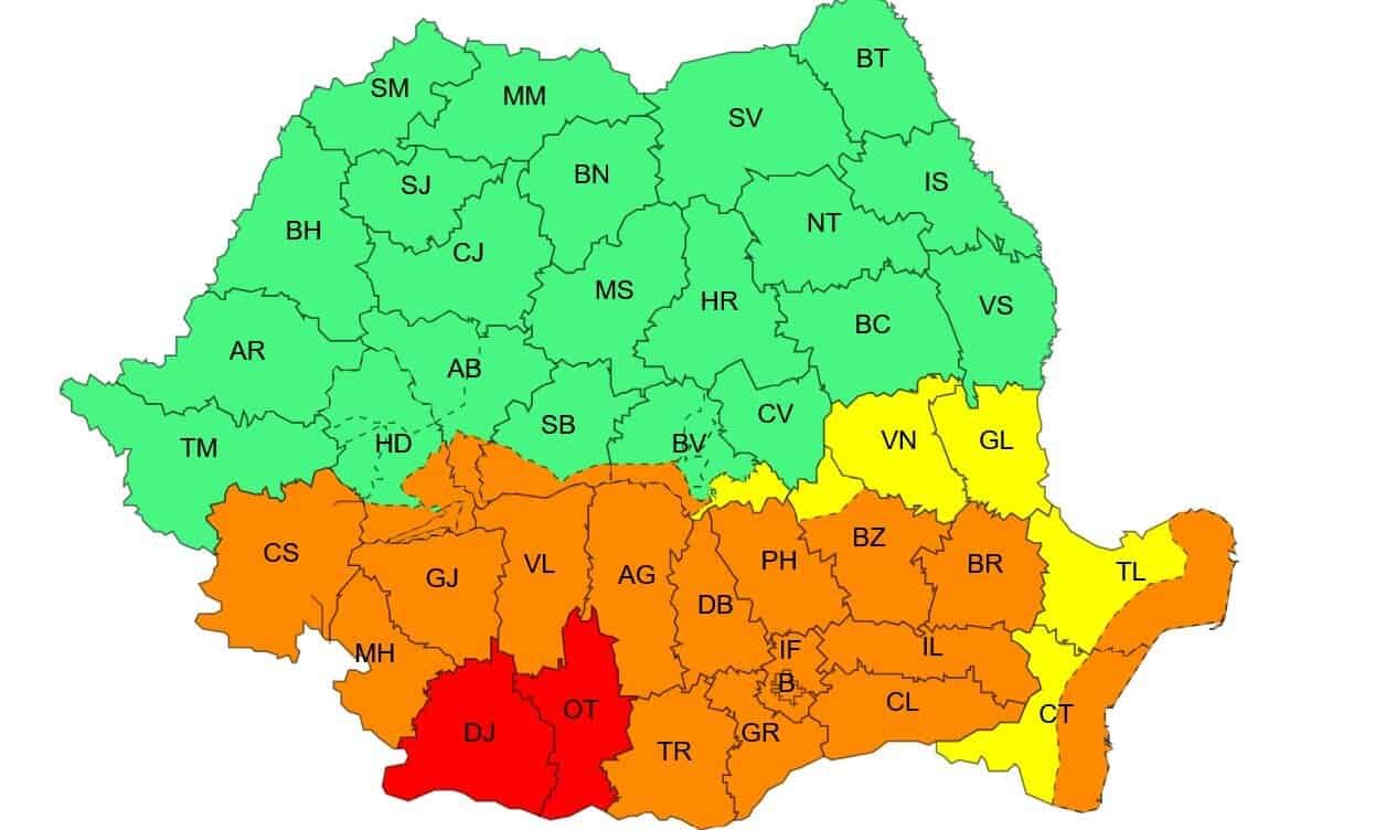 Alertă Cod Rosu de ploi abundente – județele Dolj și Olt – de joi, 2 octombrie oria 18.00 până vineri, 3 octombrie ora 21.00