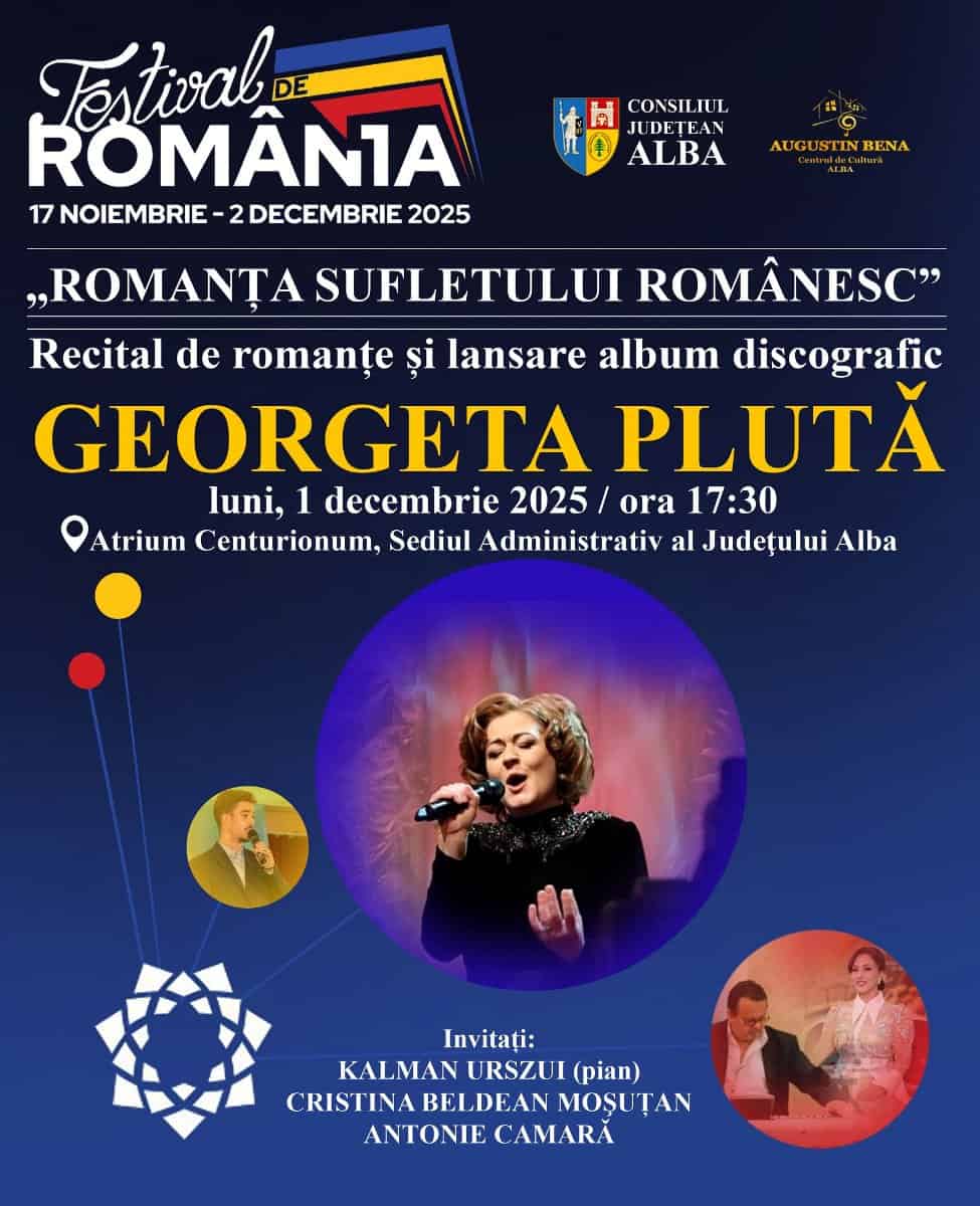 Georgeta Plută va susține un recital în cadrul evenimentului ”Romanța sufletului românesc”. Cu acest prilej, artista își lansează și albumul său discografic.