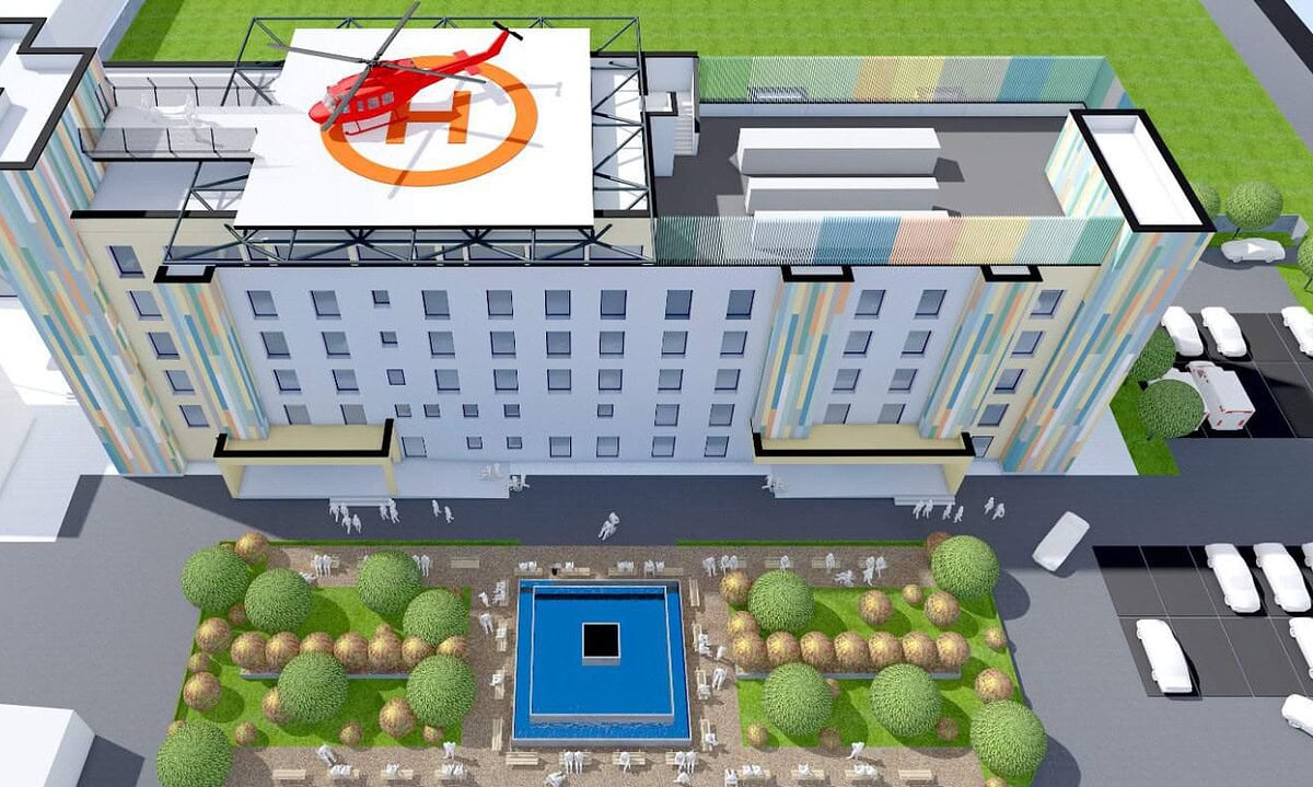 Totodată, peste ultimul nivel va fi construit un heliport. De pe heliport pacienții vor putea fi transportați printr-un lift și o pasarelă la unitatea de primiri urgențe.
