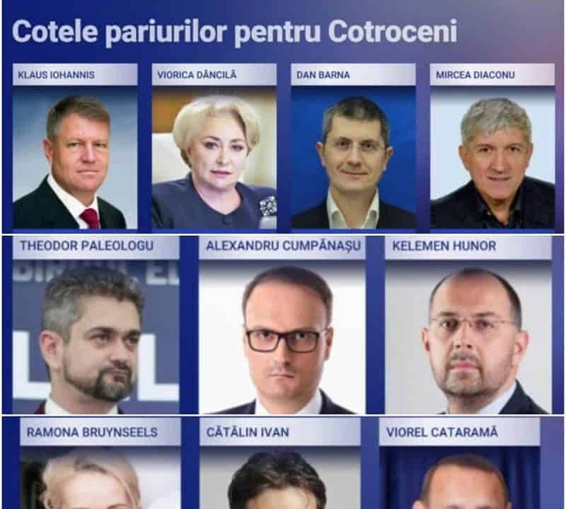Primul tur al Alegerilor Prezidențiale 2019 care va avea loc duminică, 10 noiembrie, atrage automat și casele de pariuri în cursa pentru Cotroceni.