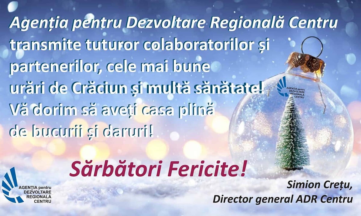 Agenția pentru Dezvoltare Regională Centru transmite tuturor colaboratorilor și partenerilor, cele mai bune urări de Crăciun și multă sănătate.