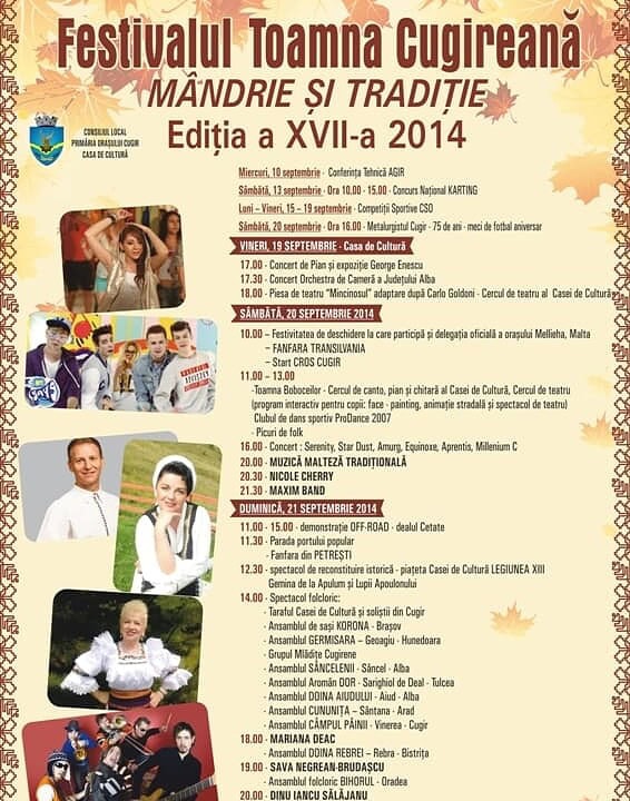Festivalul "Toamna Cugireană". Muzică, spectacole, off-road şi concursuri sportive. PROGRAMUL