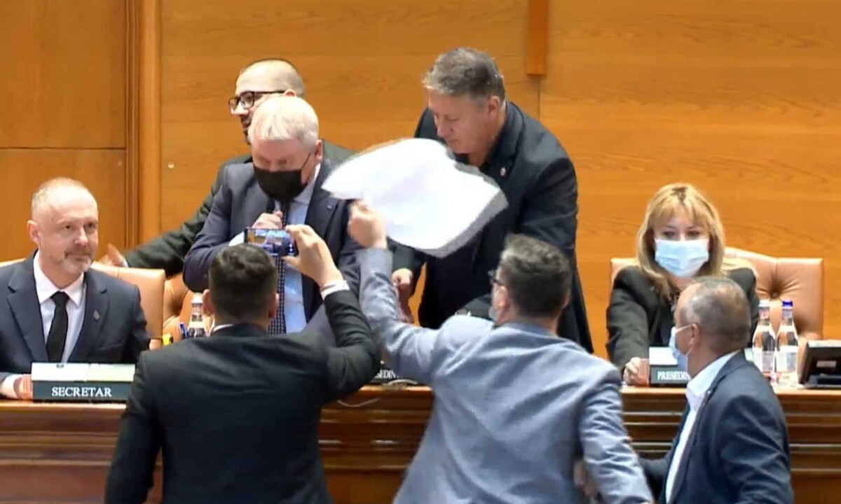 16:12 – Parlamentarii USR PLUS și AUR l-au înconjurat pe Florin Roman, au încercat să îi ia microfonul și l-au înlăturat de la prezidiu. De acum, Anca Dragu, președintele Senatului, conduce ședința.