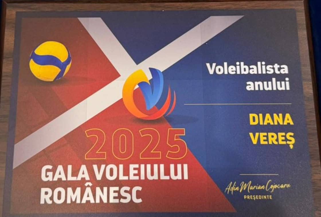 Diana Vereș a fost desemnată voleibalista anului 2025 în România, a anunțat Volei Alba Blaj. Distincția i-a fost acordată la Gala Voleiului Românesc.