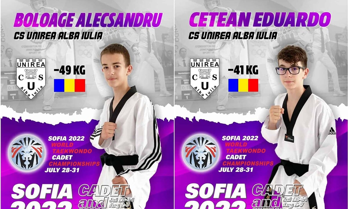 Doi sportivi din Alba Iulia, practicanți de taekwondo, fac parte din lotul României, la Campionatul Mondial de Taekwondo 2022. Campionatul are loc în perioada 28 - 31 iulie.