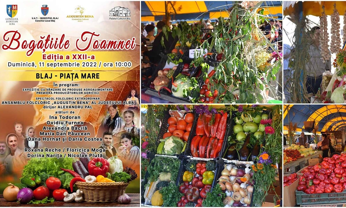Duminică: „Bogățiile Toamnei”, la Blaj. Cele mai frumoase produse din recolta anului 2022, expuse în Piața Mare Agroalimentară