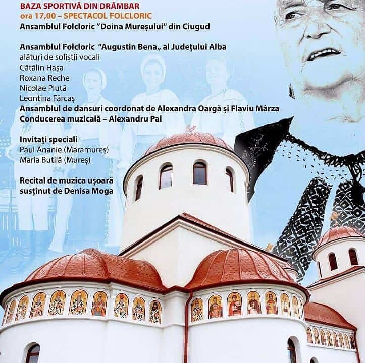 Sărbătoarea comunităţii Teleac – Drîmbar va continua, la ora 17.00, la Baza Sportivă Drîmbar, cu un spectacol în aer liber de muzică populară, în care vor evolua Ansamblul Folcloric „Doina Mureşului” din Ciugud, Ansamblul Folcloric „Augustin Bena” al Judeţului Alba alături de soliştii vocali Cătălin Haşa, Roxana Reche, Nicolae Plută, şi Ansamblul de dansuri coordonat de Alexandra Oargă şi Flaviu Mârza.