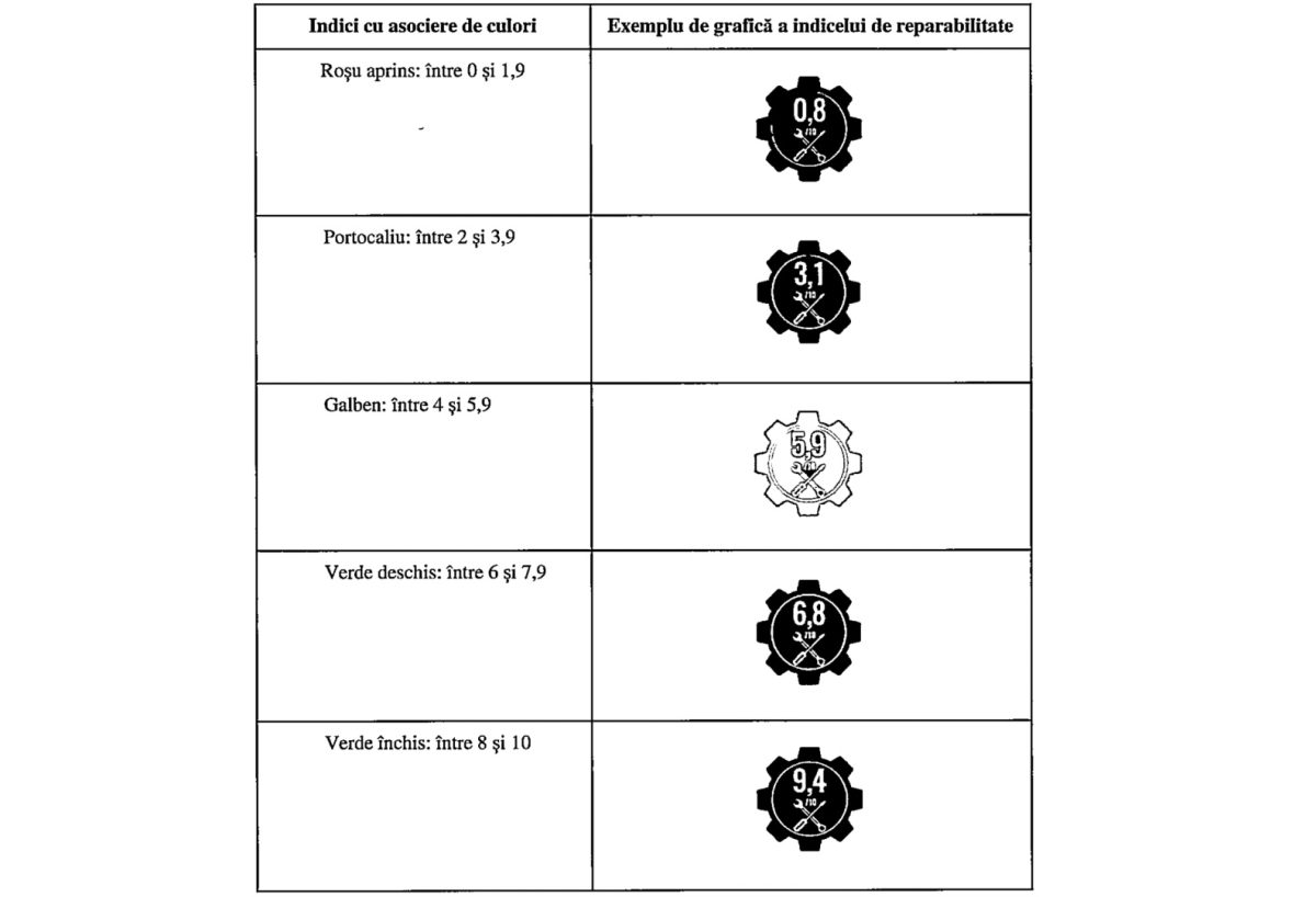 Indicele de reparabilitate al unui produs va avea o valoare cuprinsă între 0 şi 10, unde o valoare mai mare indică un grad mai ridicat de reparabilitate al dispozitivului.