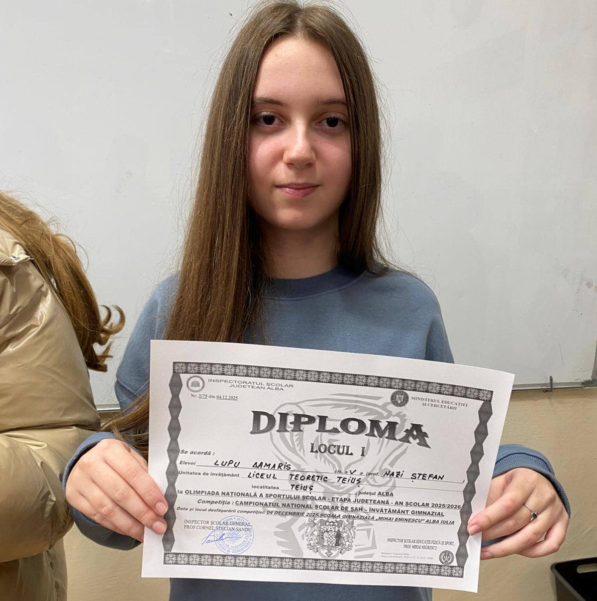 O elevă a Liceului Teoretic Teiuș a câștigat primul loca la faza județeană Alba a Olimpiadei Sportului Școlar, secțiunea șah. Aceasta va reprezenta județul la etapa națională.