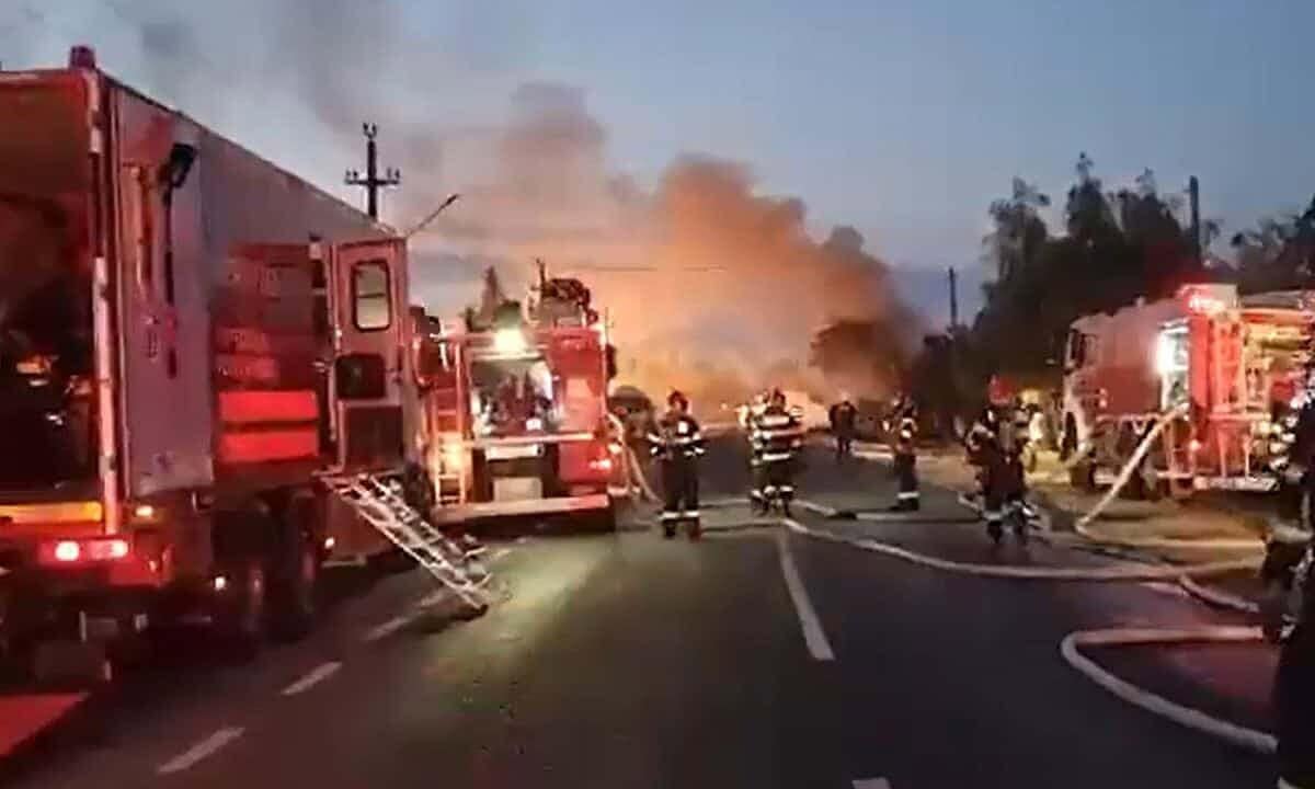 În interval de circa o oră încep să și facă apariția diferite echipaje de poliție, mai multe mașini de pompieri, care încep să securizeze zona, încercând să facă intervenția de eliminare a incendiului și sursei de risc.