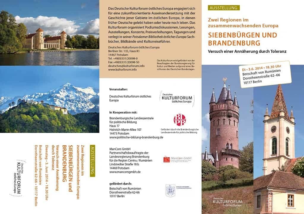 Expoziție itinerantă în Germania. Două regiuni într-o Europă plin proces de integrare: Brandenburg și Transilvania - un parteneriat de succes