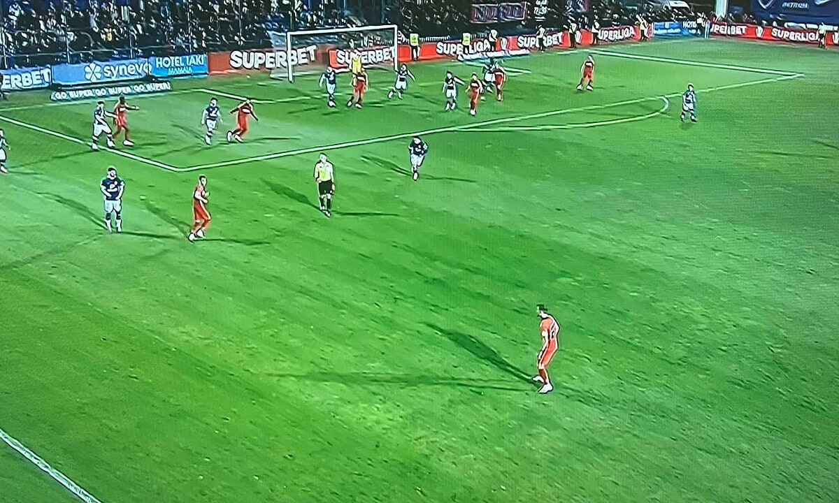Min. 42. Farul reduce din diferență. Borza centrează perfect după o combinație perfectă cu Mazilu, iar Mateus Santos înscrie cu o lovitură de cap.