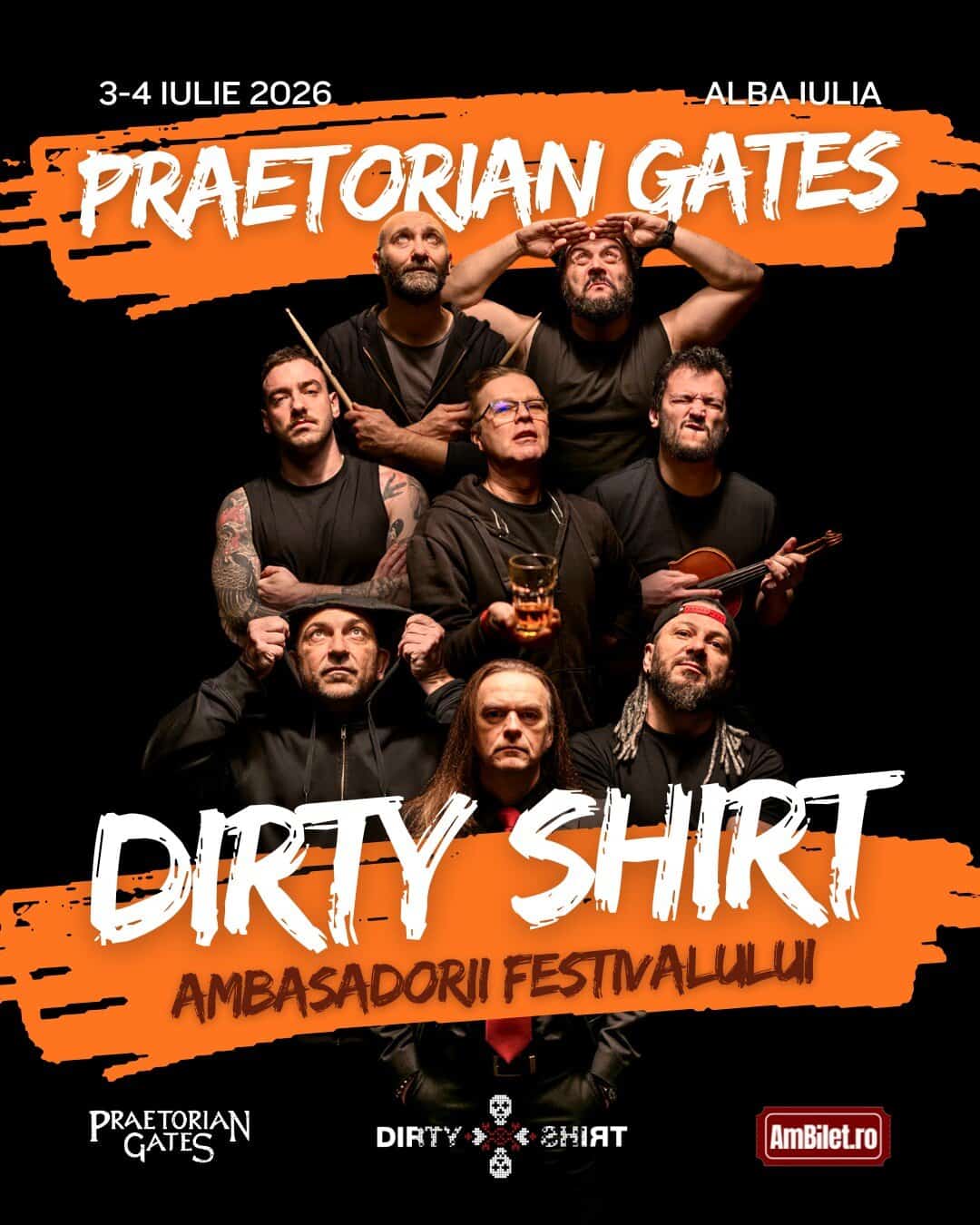 Organizatorii festivalului Praetorian Gates, care revine cu o a doua ediție în 3-4 iulie 2026, în Cetatea Alba Carolina, au plăcerea de a anunța o colaborare semnificativă cu trupa Dirty Shirt, care se întoarce la Alba Iulia și devine ambasador oficial al festivalului.