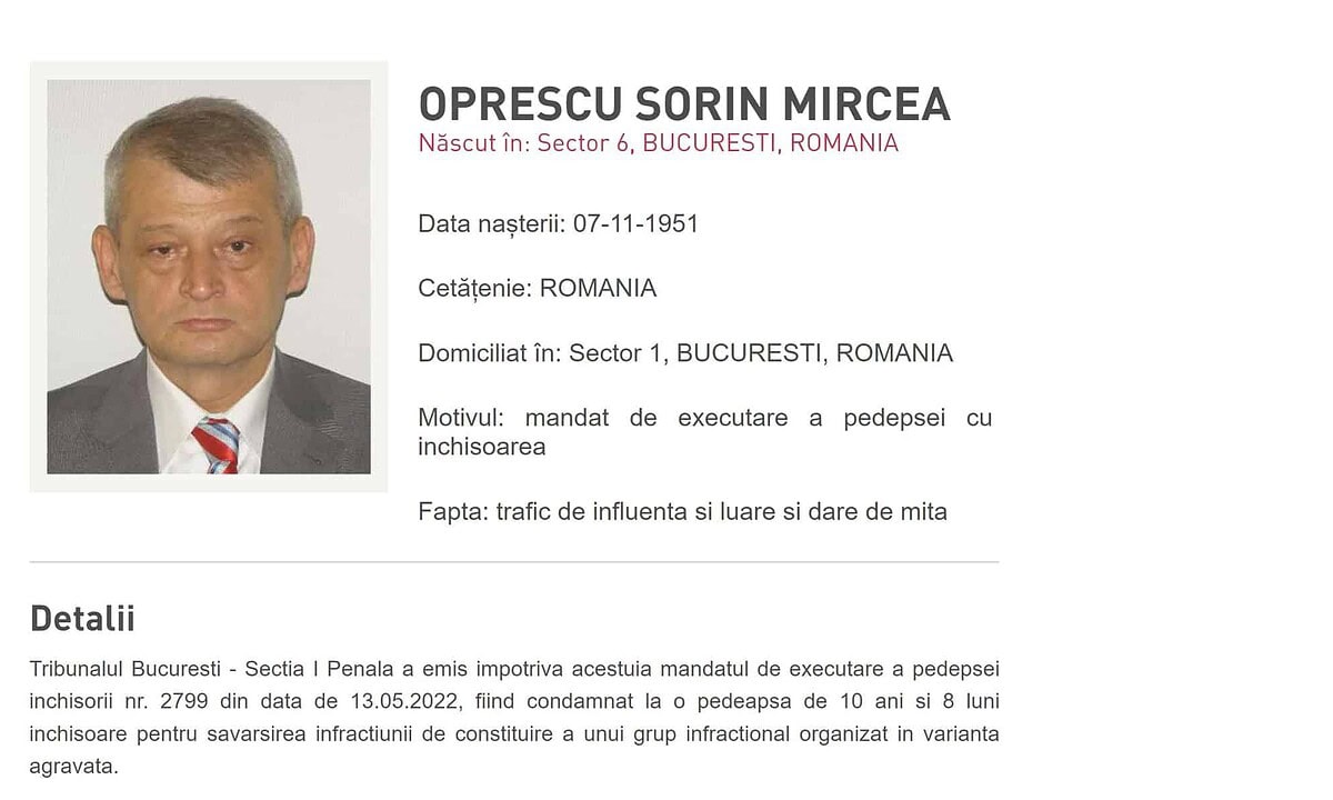 CITEȘTE ȘI: Fostul primar al Capitalei, Sorin Oprescu, a DISPĂRUT. A fost condamnat la 10 ani și 8 luni de închisoare