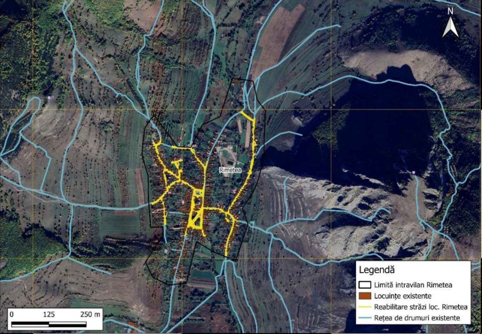 Potrivit documentației, proiectul vizează modernizarea a 14 străzi din Rimetea, astfel încât accesul locuitorilor din zonă către rețeaua județeană de transport să se desfășoare în condiții maxime de siguranță și confort.