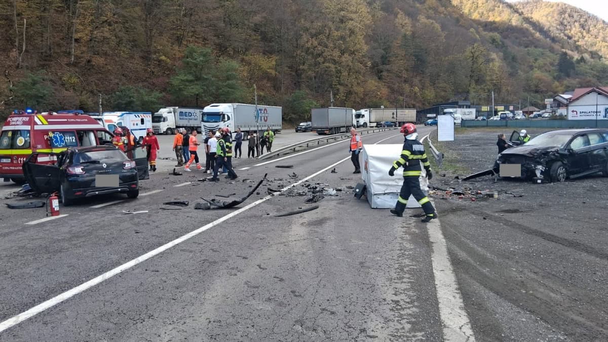 În accident sunt implicate două autoturisme, două persoane au fost descarcerate, una dintre ele aflându-se în stop cardio-respirator, pentru aceasta efectuându-se manevrele de resuscitare. La locul intervenției, se mai află încă trei victime, acestea fiind monitorizate de echipajele de prim-ajutor.