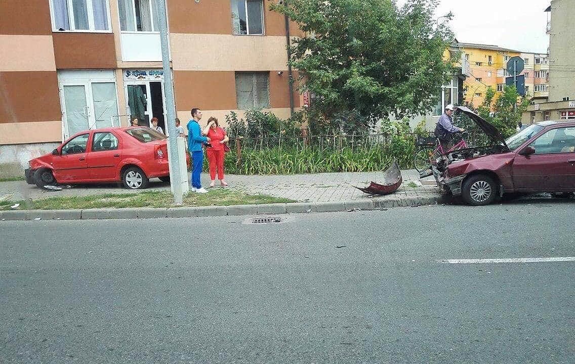 FOTO: ACCIDENT în Alba Iulia. Două autoturisme avariate după ce s-au lovit în intersecţie. Una dintre maşini a ajuns pe trotuar