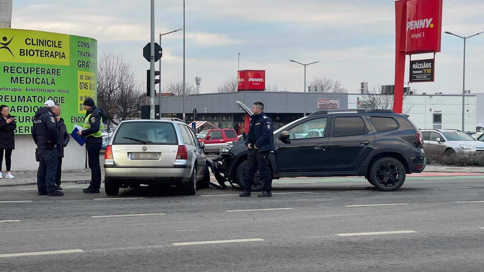 Un accident s-a produs duminică dimineața în Alba Iulia, între un autoturism marca Duster și un VW.